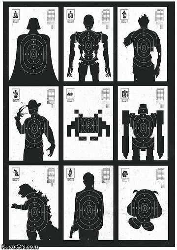 Darth Vader, Terminaattori, Freddy Krueger, Space Invader, Transformers, Godzilla, Agent Smith ja Goomba, noi ainaki tunnistin mut voisko joku sanoo mikä toi yks onn? 8)