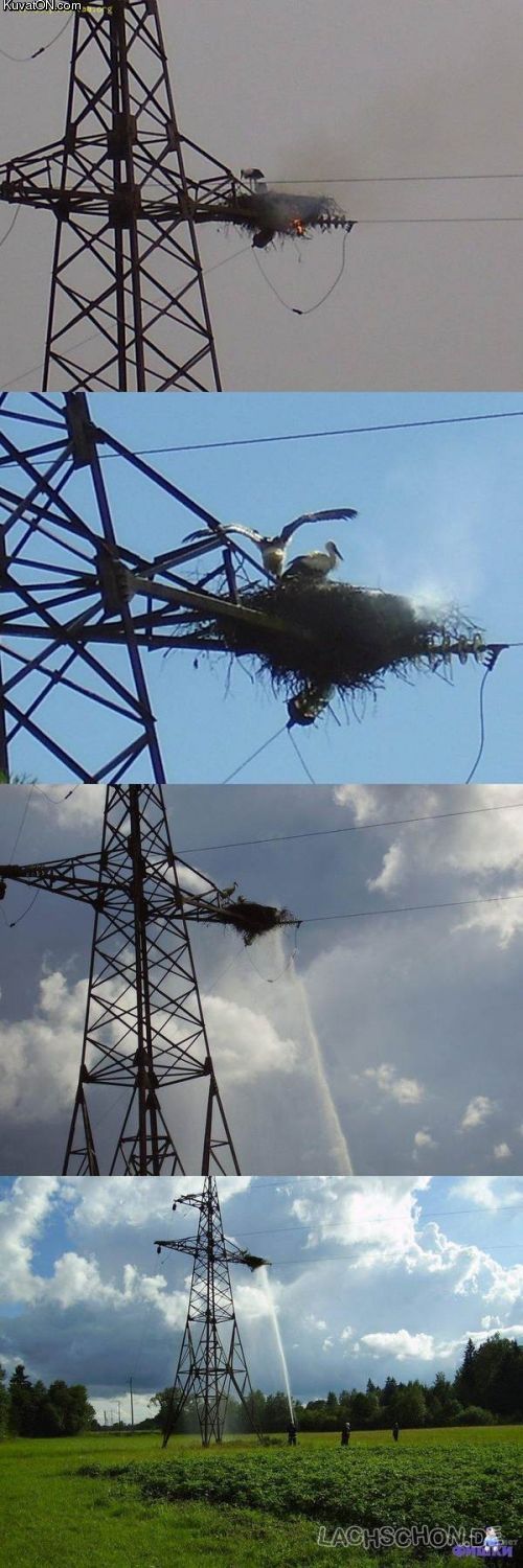 lisäksi sade on eriasia kuin tuollainen vesisuihku, sade ei ole yhteydessä maahan , tuon kautta voi sähkö voi kulkea, ehkä..mutta aivan varmasti sähköt on otettu pois tuolta ennen kun mennäää ruiskimaan linjaan mitään