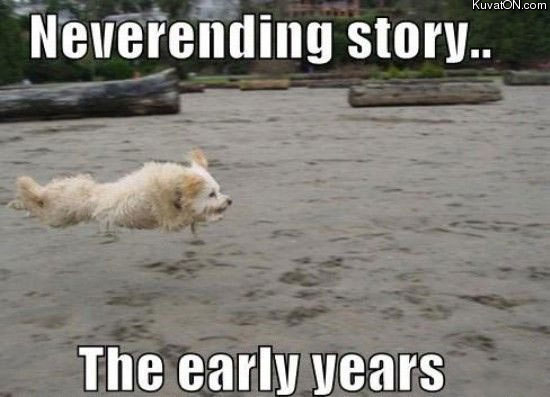 neverending story=päättymätön tarina, siinä oli tuon kaltainen lentävä olento, en muista oliko se koira vai jokin lohikäärme...