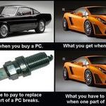 ihan identtistä pc-rautaa niissä mäkeissäkin on, samoja intelin prossuja, nvidian/atin näytönohjaimia, intelin piirisarjat, ja eiköhän muistit ja kiintolevytkin ole ihan jonkun yksittäisen valmistajan.
