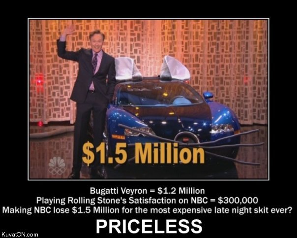 Niin, tuskimpa tuon auton arvo laski 1,2 miljoonaa tuon sketsin takia...