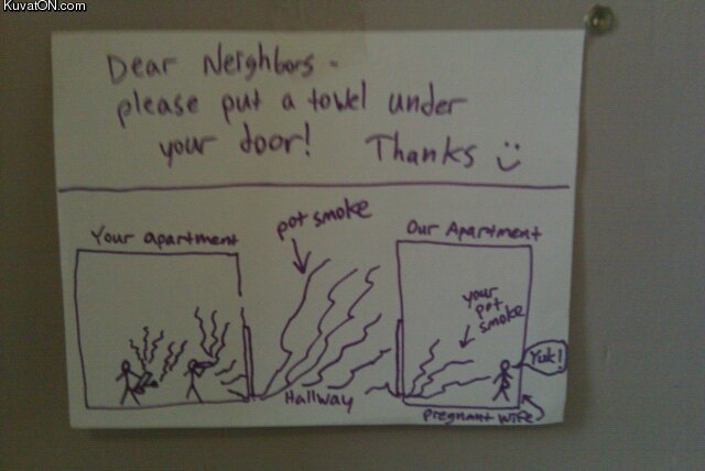 Eihän se weedin, tupakan, viinan tai ruusukaalin haju rappukäytävässä ole ikinä toivottavaa, mutta jos joku pitäisi noista valita, niin... no, tiedätte varmaan.