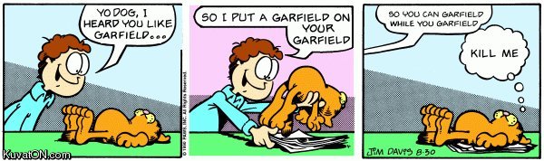 yo dawg, mutta mitä he*vettiä tarkoittaa garfield-verbi? :-)
