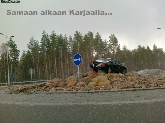 Täällä päin Suomea oli melkein tapana liikenneympyröiden valmistuttua päästää vain suoraan