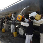 Kyllä toi on bensaa, uskoisin. Näyttä siltä, reijät tulee niin kalliiks ettei ne huvin vuoksi noin tankkia tyhjennä. Jotkut ovat ampuneet reijät, afganistan, paikka jo kertoo jotain.. Ja jos reijät ovat siinä, bensa kannattaa ottaa talteen mitä pysty