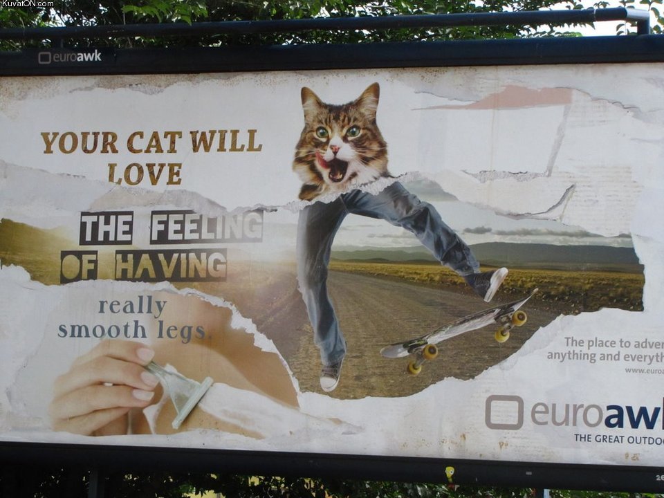 Teksti on kyll paras täs. Pitää kokeilla omalle kissalle ett tykkääkö se, että sillä on sheivatut jalat.