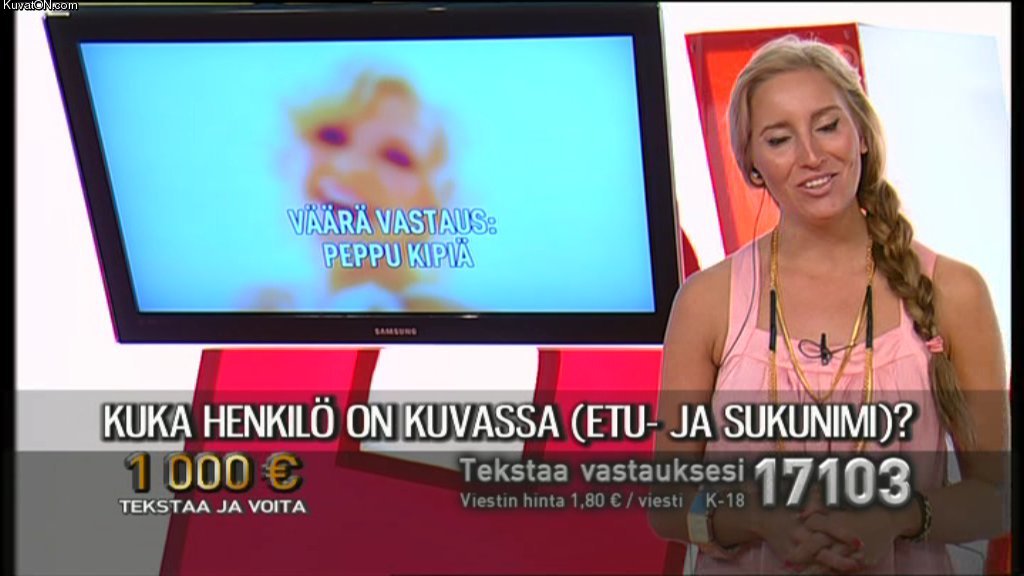 "Tekstaa ja voita!" 1,80 e / viesti. Kun lähetät viestin, saat paluuviestinä puhelinnumeron, johon soittaminen maksaa jtn 1,50 min ja siellä sitten kisaat 1000 eurosta koneen kanssa.. äly hoi, älä jätä!