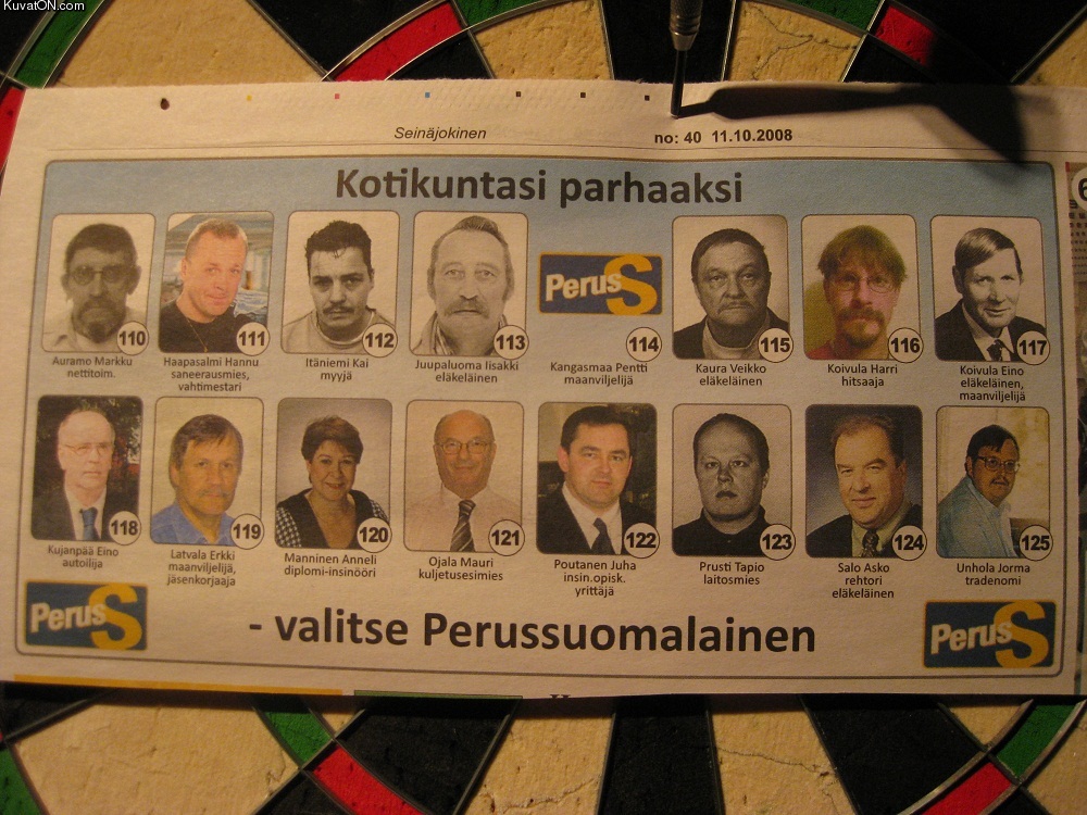 Niin,nämähän ovat edellisten kunnallisvaalien ehdokkaita. Seinäjokisilta voisi kysyä, moniko ylläolevista pääsi läpi ja oikeasti vaikuttamaan. Eduskuntavaaleissa tarvitaan ihan toisenlaisia rahkeita.