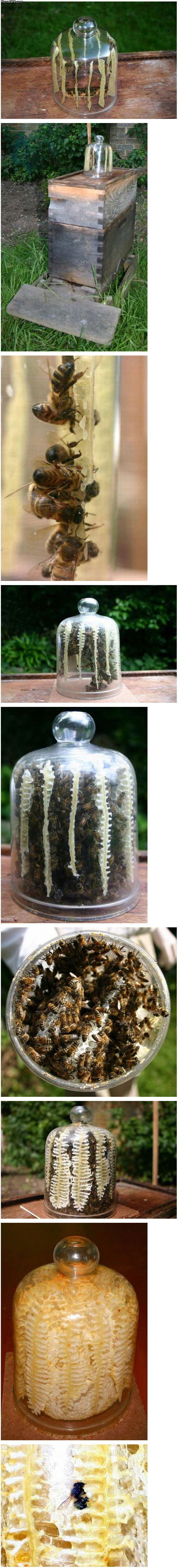 Jännää... Ko eiks noi yleensä tee noi hunajat paikkaan, johon ei pääse valoa? Vai onko tää jotain hyvin erikoisvalmisteista lasia?