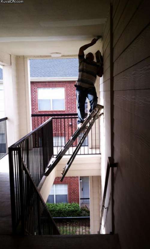 tälläsiä kuvia näytetää aina työturvallisuuskurssilla ja kysytään mitä tässä tehdään väärin :D