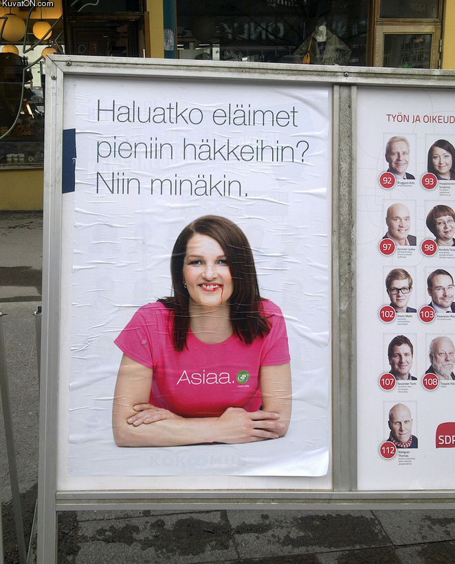 Kannatan. Kokoomuksen mainoksen päälle vielä lätkäisty. Haha =D