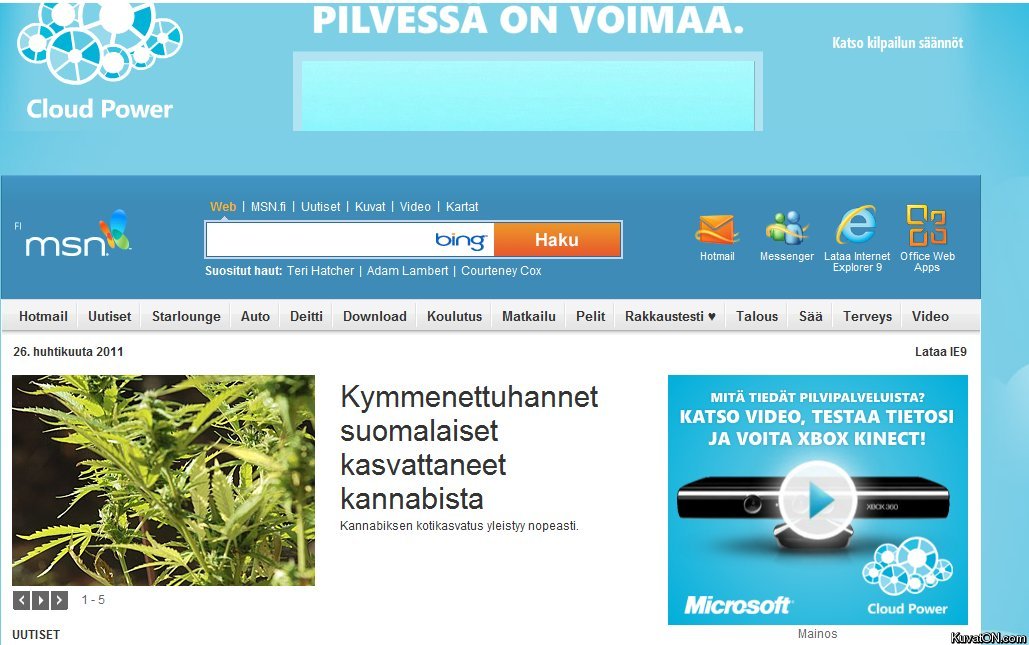 | 27.04.11 13:04 | <Kokaiini> | Huvittanut tuo MSoftin mainoskampanja jo pidemmän aikaa. Ainakin se saa näkyvyyttä ;D |
