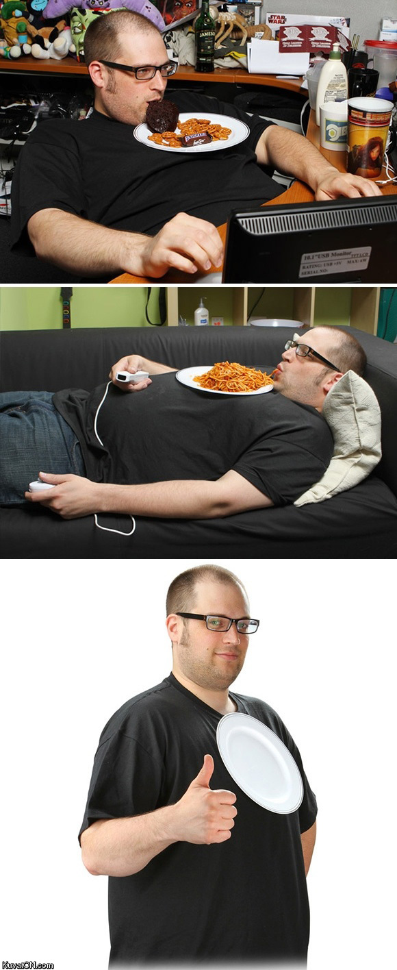 saattaa olla melko vaikeeta liikkua ton kanssa ruuat lautasella.. vai lähteekö se irti siitä paidasta?