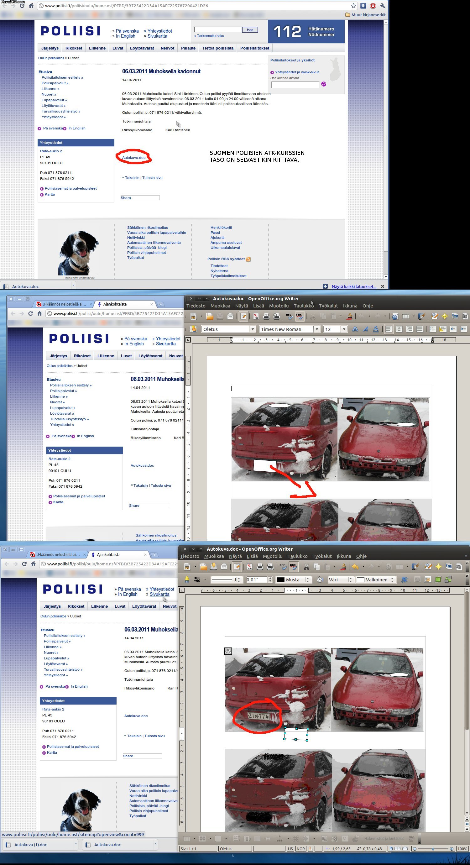 Näääin. Oiskohan mitä, jos poliisi palkkaisi vaikka yhden ATK valveutuneen toimistorotan töihin joka asemalle, jossa käsitellään julkiseen www-jakoon tulevaa materiaalia?