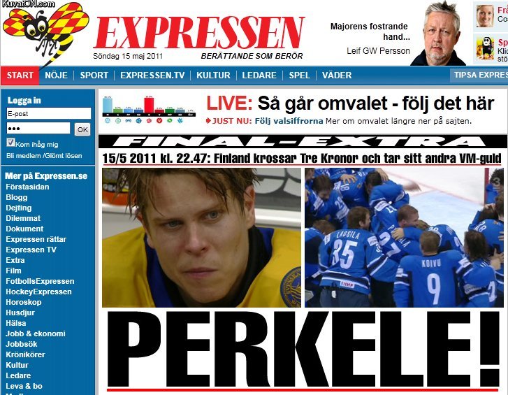 | 16.05.11 00:29 | <SqFKYo> | Ruotsin Iltalehden kommentti kun Suomi voitto 6-1 :D |