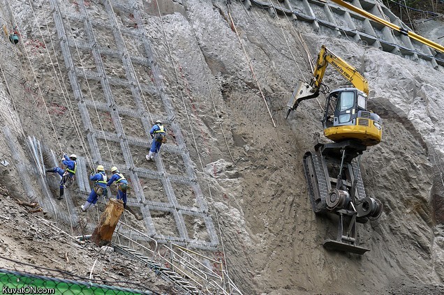 Kertokaapa minulle, millä fysiikanlailla tuo kone pysyy tuossa? Äkkiseltään kun katson, niin kaapeleita ei ole ja asento on kohtalaisen... jyrkkä pysyäkseen ilman apuja tuossa.
