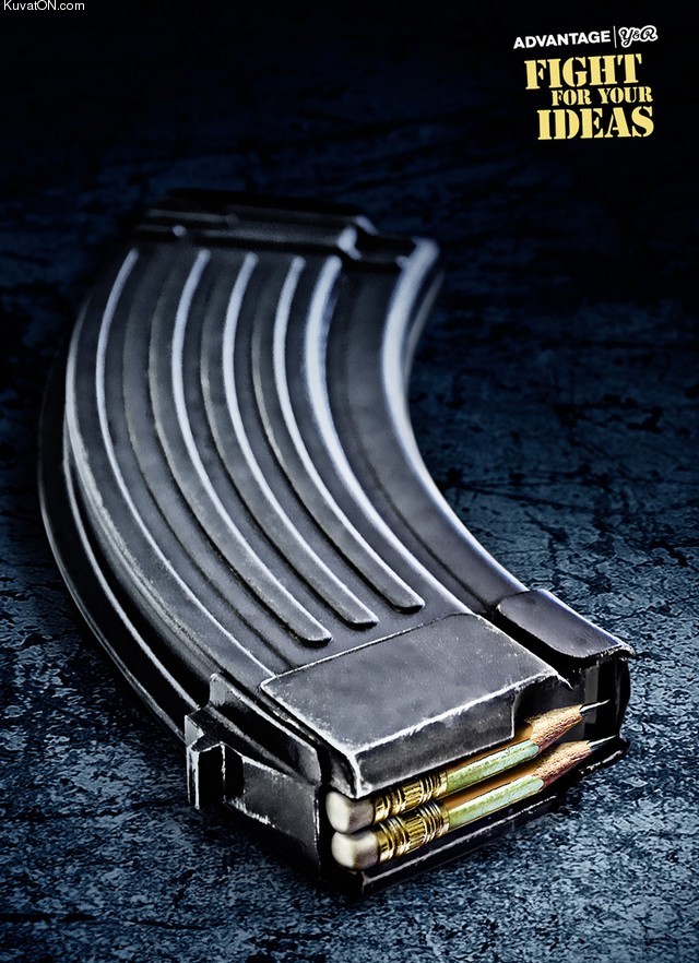 Vanha idea - kynä on ase...mutta komeesti näytti ekalla silmäyksellä luodeilta.