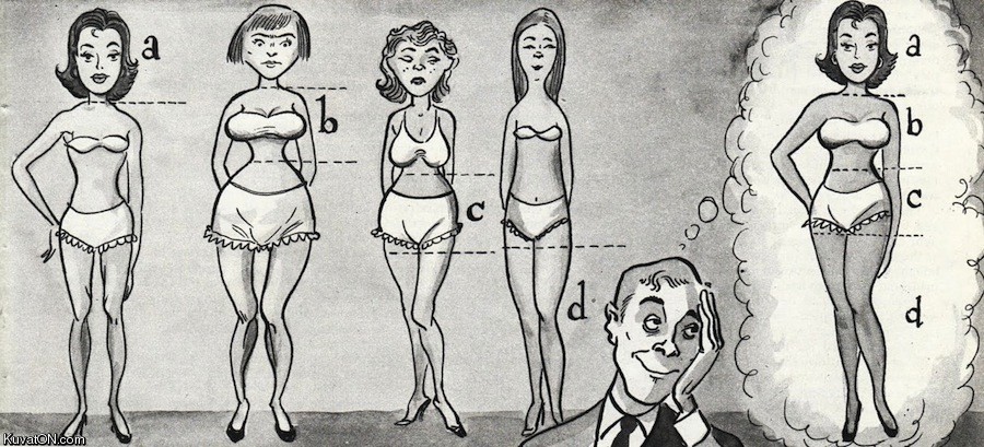Itselläni on vähän saman tyyppinen vartalo kuin tossa haavekuplassa mutta en ole yhtä luikku ja minulla ei ole ihan noin isot rinnat. :( Oisihan se kiva olla miesten ihannoima mutta onneksi voin silti astella peilin eteen tyytyväisenä.