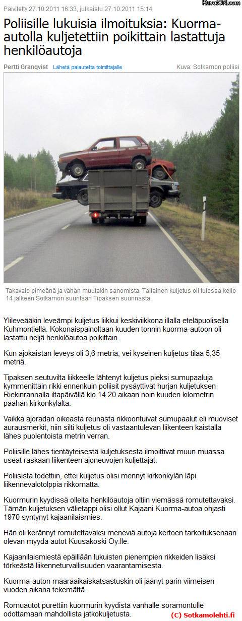 "odottamaan mahdollista jatkokuljetusta" Eli vaihtoehtona autojen jättäminen monttuun? Joko romuautoista maksetaan taas?