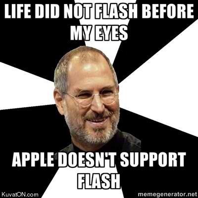 Eipä erityisemmin apple-tuotteista tietoakaan, mutta flash rupee olemaan jo niin fossiilinen tekniikka, että ihan hyvällä asialla selvästi liikkuvat. Pitää osata katsoa tulevaisuuteen.
