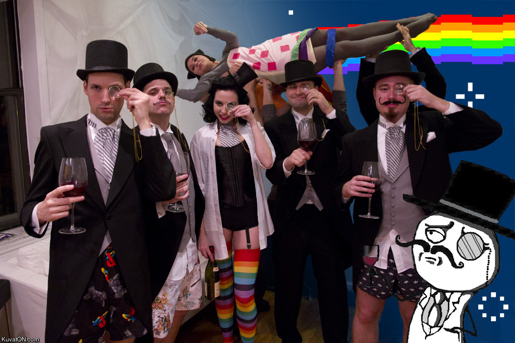 | 19.12.11 17:25 | <Kokaiini> | Sateenkaarisukkikset kyllä varasti huomion... Ja toiset vaan pleikkaripöksyi kattelee, lol fags :D |