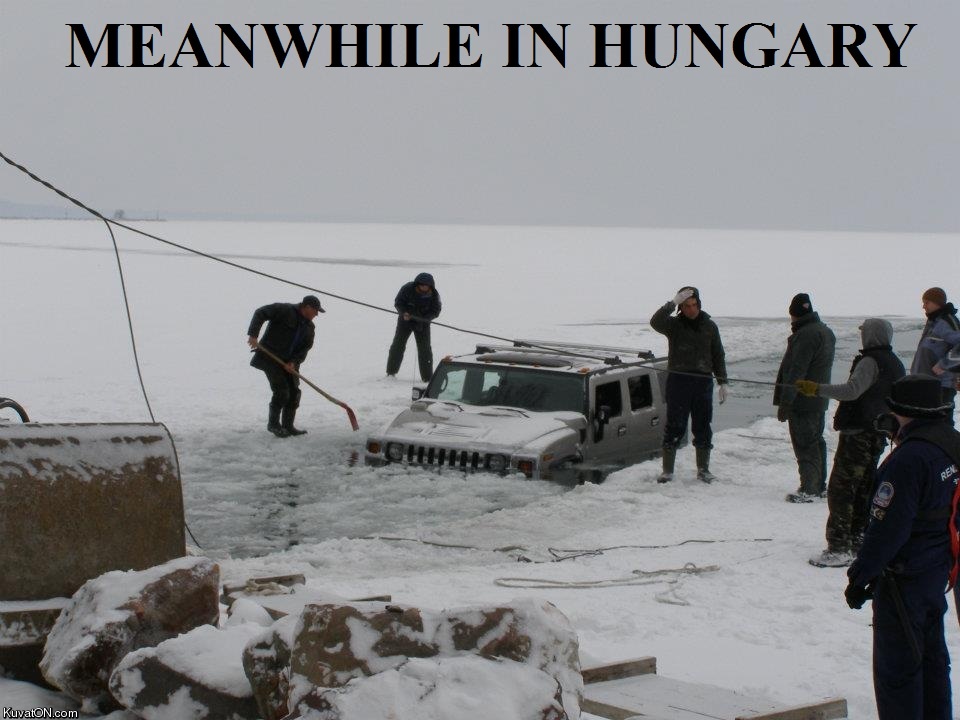 Mie taas puolestani en o vielä kyllästyny näihin "Meanwhile in .."-kuviin. Nauranpahan vaan vaan partaani typerille hollantilaisille. (eiks Hungary o Hollanti?)