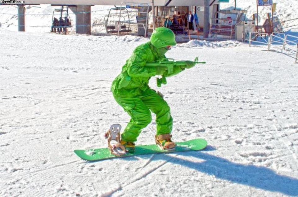 Itse pidän tätä helskatin komeana koska leikin lelusotilailla talvisin lumilautailijoita. Eikä kyllä ole tullut ennen vastaan tälläistä lumilautaversiota tästä.