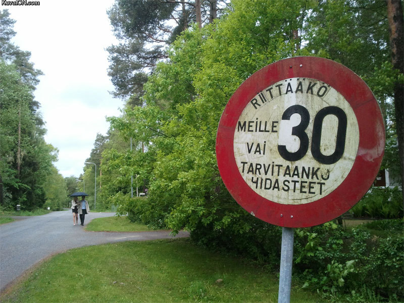 | 04.06.12 09:42 | <jm81> | tuo ei mene liikennemerkistä ja se on sitten 50 tai 80 riippuen ollaanko taajamassa. |