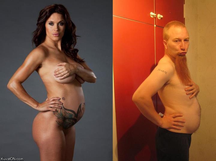 Molemmat on rumia ku synti. Raskaana oleva nainen EI ole kaunis, siis hyi he*vetti.