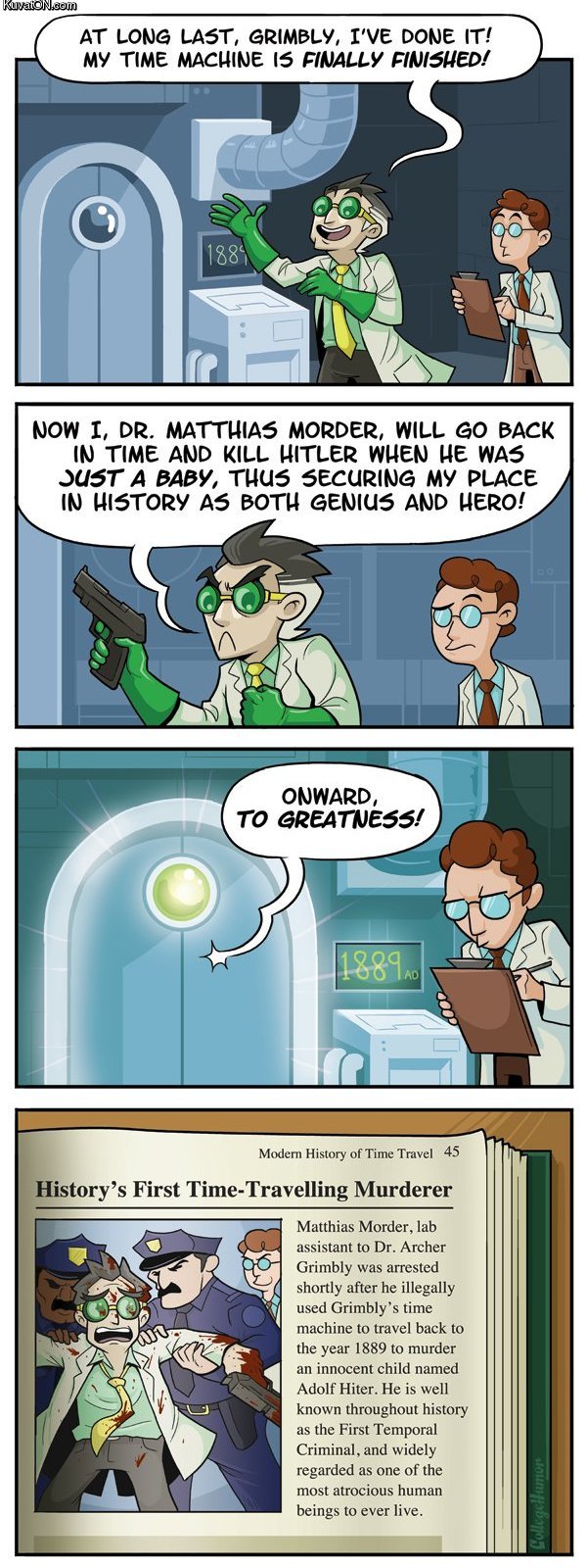 Jos tohtori Grimbly tappaa lapsen ja jää kiinni, niin eihän hän koskaan keksisi aikakonetta, jolla päästä tappamaan Hitler.
