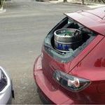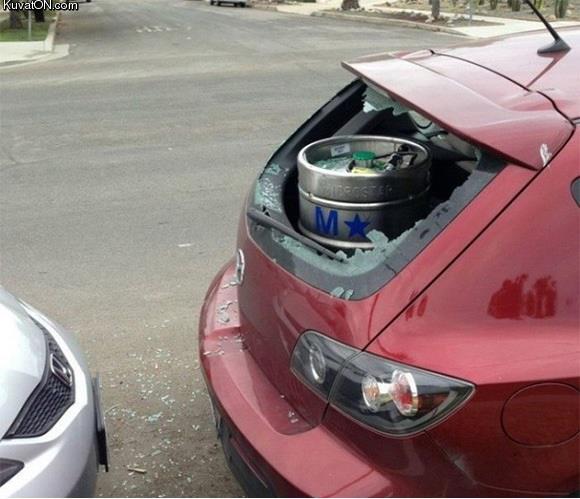 mullekkin tapahtu kerran (melkein) noin. Pistin pari rautaputkea autoon ja sitte ei mahtunut kunnolla ni annoin vähän vauhtia, kun tuntu että tilaa olis, ja meni suoraan etulasin kulmasta läpi