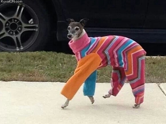 | 24.11.13 10:17 | <Kuulintu> | koira + vaatekappale = automaattinen miinus |