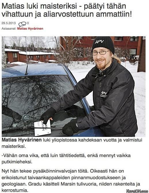 Onhan toi vähän sääli, samaa aikaa ku kaikille toitotetaan, että ehdottomasti pitää mennä alalle, joka kiinnostaa. Ei olla siel peruskoulussa tarpeeks rehellisiä et "Pysykää helkutin kaukana näistä aloista, töitä ei oo ja pelkkää stressiä loppu elämä