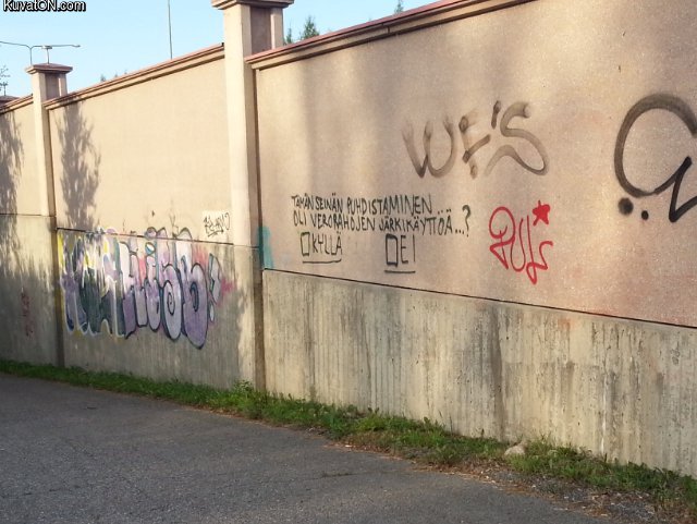 Tämän seinän sotkeminen oli verorahojen tuhlausta? Kyllä