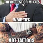 Tatuointikriminaali kun tekee hommiaan, muutama ihminen kärsii ja yleensä vakuutus korvaa. Kravattikriminaalien tekosista kärsii koko maailman talous. Miljoonia tuhottuja perheitä. Kymmeniätuhansia itsareita.