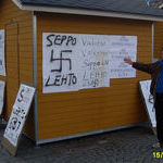 Tampereellahan sepi pyörii, valitettavasti. Mitään positiivista en tosta äijästä oo vielä löytäny, rasistiparas. en edes ymmärrä mitä hauskaa tässä kuvassa on