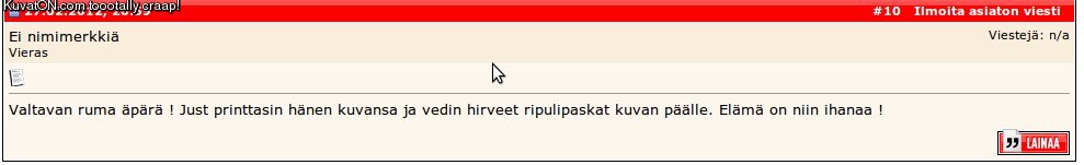 Kuvaton.com ei omista n�ist� kuvista yhteenk��n tekij�noikeuksia (ja olisi syv�sti h�peiss��n jos omistaisi). Jos l�yd�t oman, tekij�noikeuksia loukkaavan kuvan, otathan yst�v�llisesti yhteytt� yll�pitoon